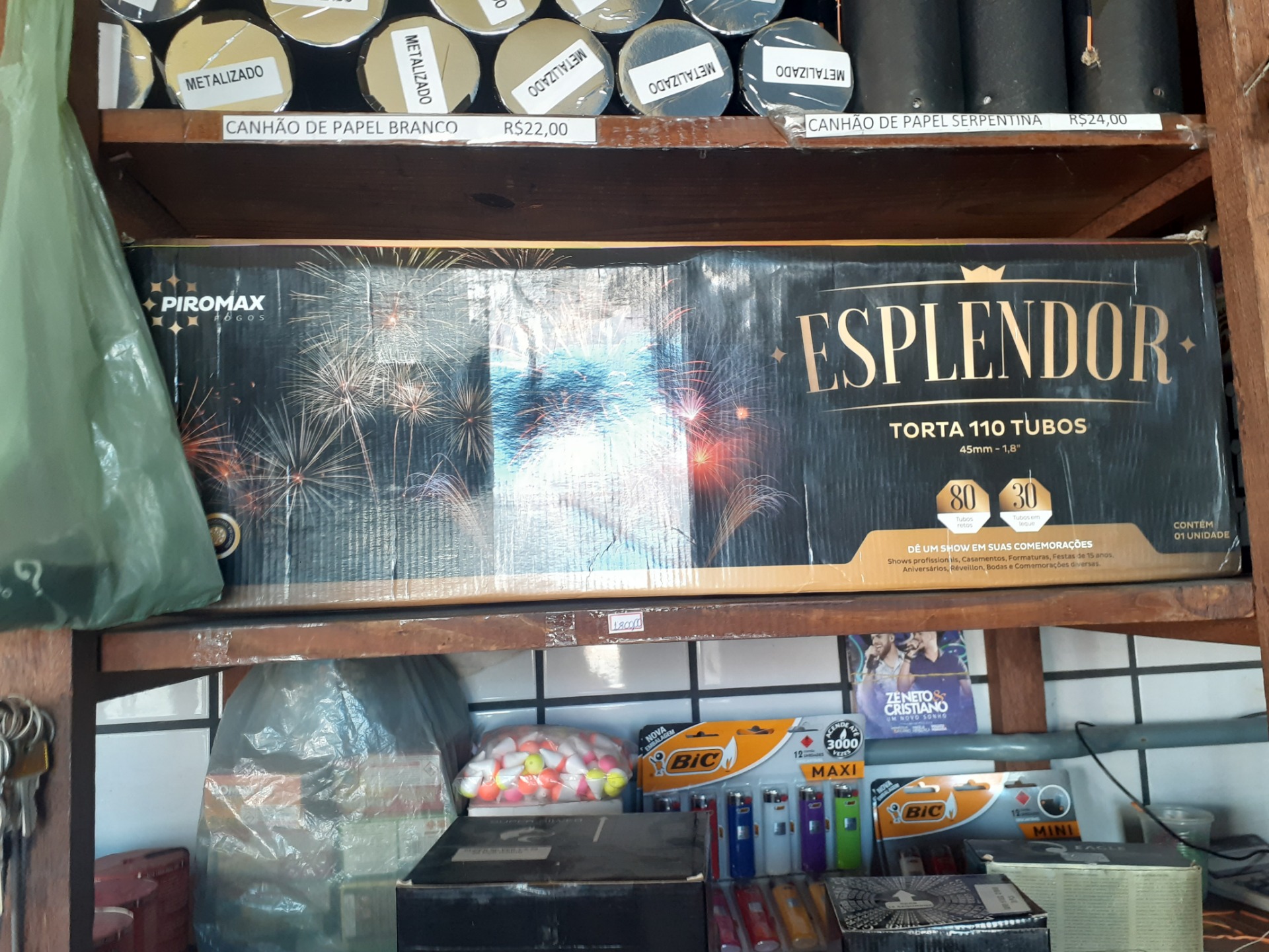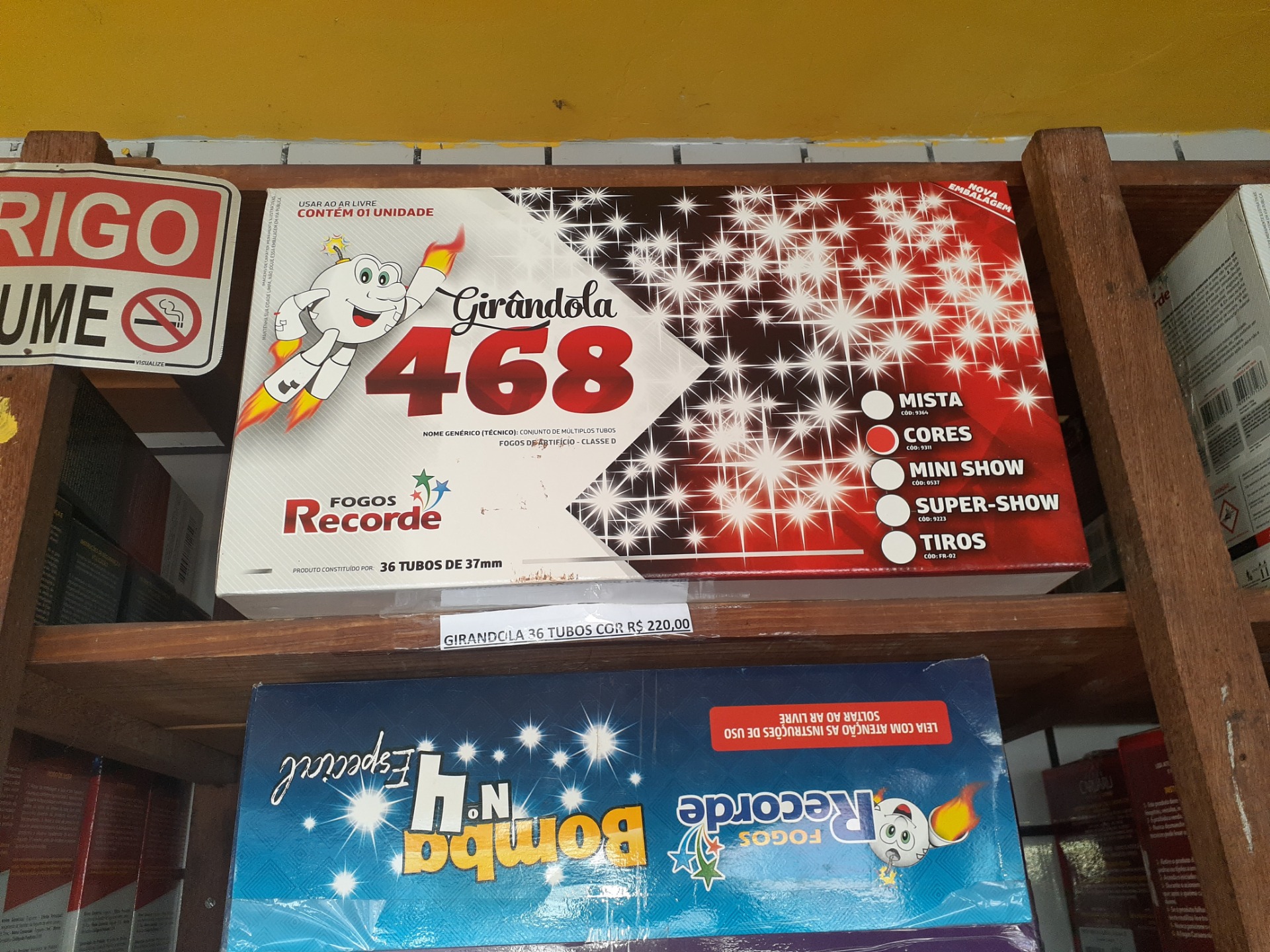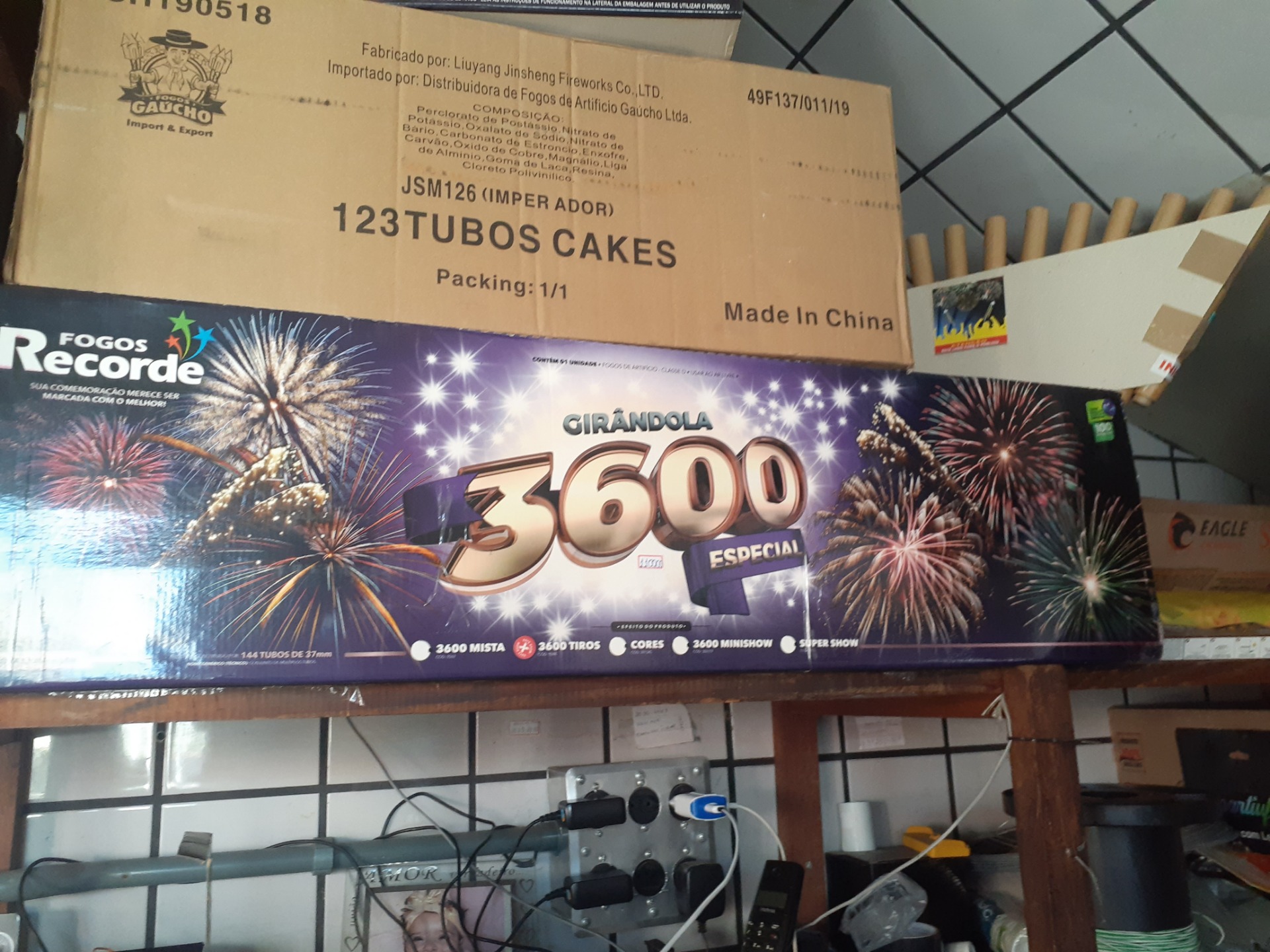 São fogos que contém 468 efeitos de luzes no céu, e tudo isso ja encaixado numa base para realização dos fogos;